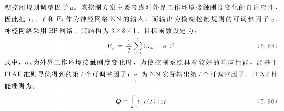 模糊控制是應(yīng)用Z廣的一種智能控制,它具有多種結(jié)構(gòu)形式,如 PID 模糊控制、自組 織模糊控制、自校正模糊控制、自學(xué)習(xí)模糊控制、專家模糊控制等。其中,自校正模糊控制屬于自適應(yīng)模糊控制。下面提出一種由神經(jīng)網(wǎng)絡(luò)訓(xùn)練模糊控制規(guī)則的自適應(yīng)模糊控制 器,并把它應(yīng)用于附加力外環(huán)的機(jī)器人力/位置混合控制。